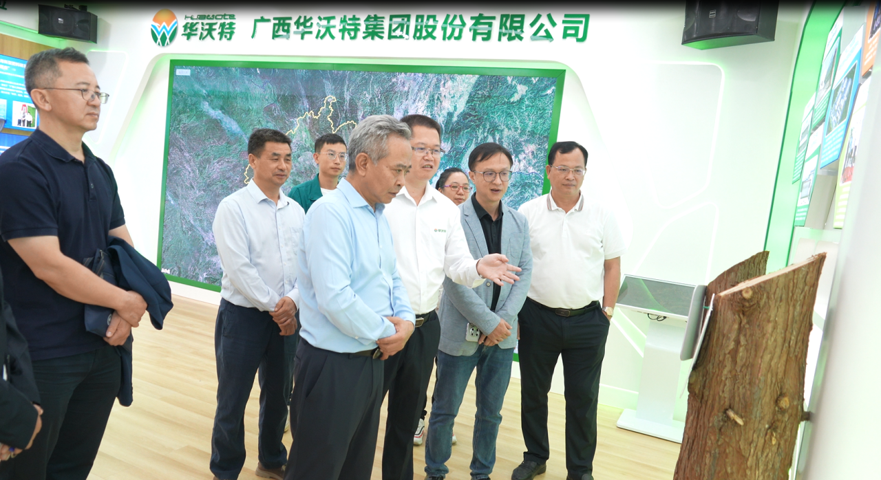 2023年8月7日下午,广西壮族自治区林业局二级巡视员冷光明率自治区林业数字化转型专班到华沃特集团调研。
