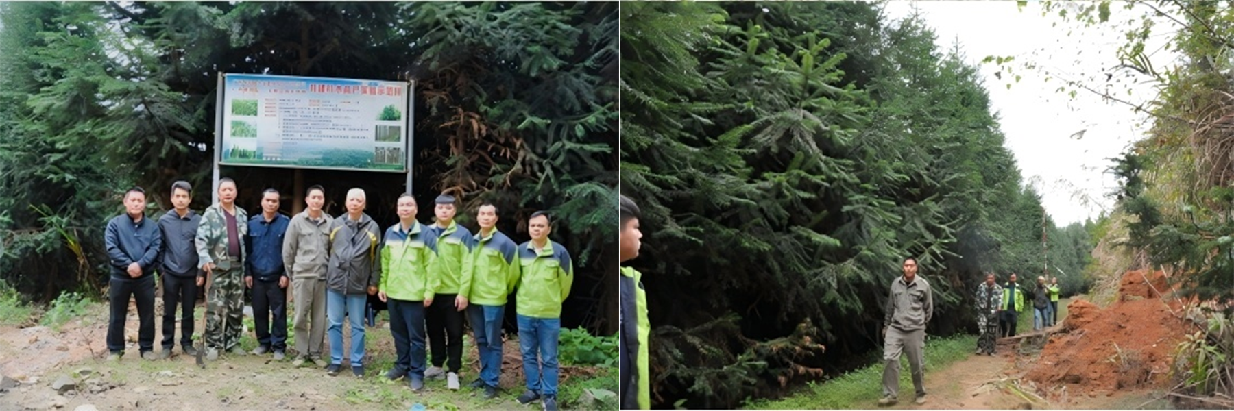 天峨林朵林场巴雍分场杉木示范林由广西华沃特集团股份有限公司、广西林科院、天峨县林朵林场三方共建,2014年2月造林,林场自育良种苗,试验林面积150亩,造林密度167株/亩,株行距2×2米,海拔810米。通过使用华沃特杉木专用肥等培育方式,取得了令人瞩目的试验成果。