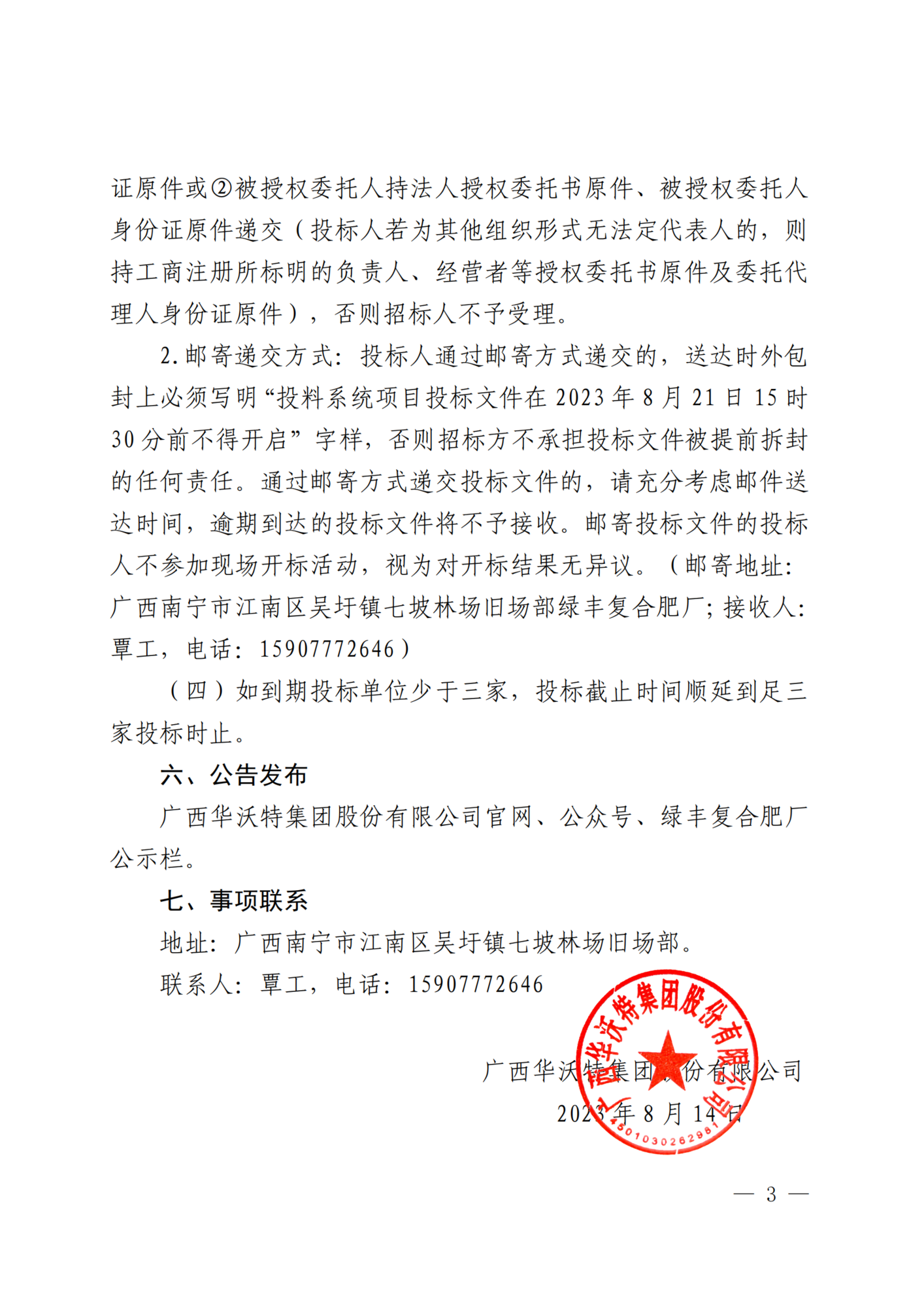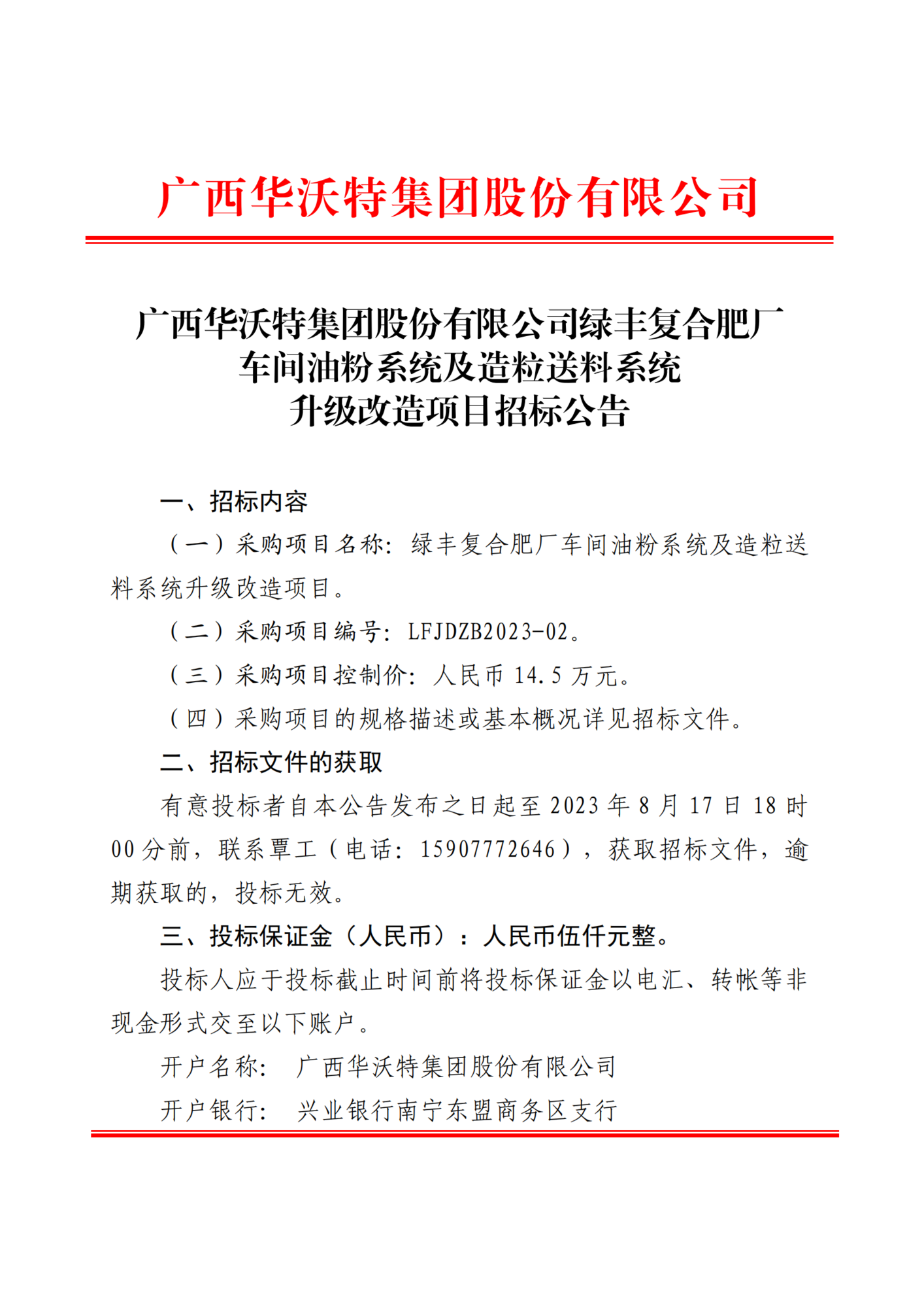 广西华沃特集团绿丰复合肥厂车间油粉系统及造粒送料系统升级改造项目招标公告