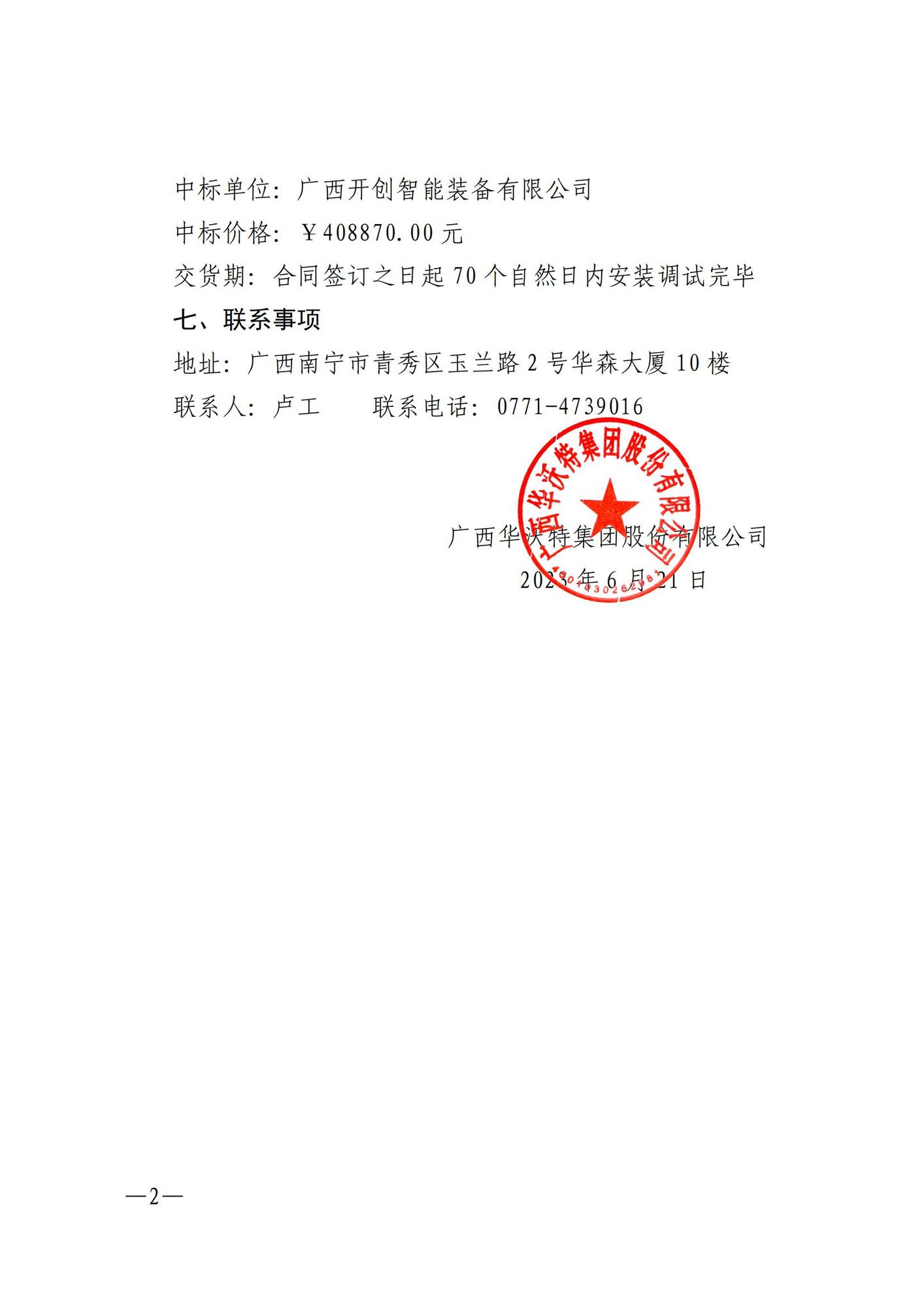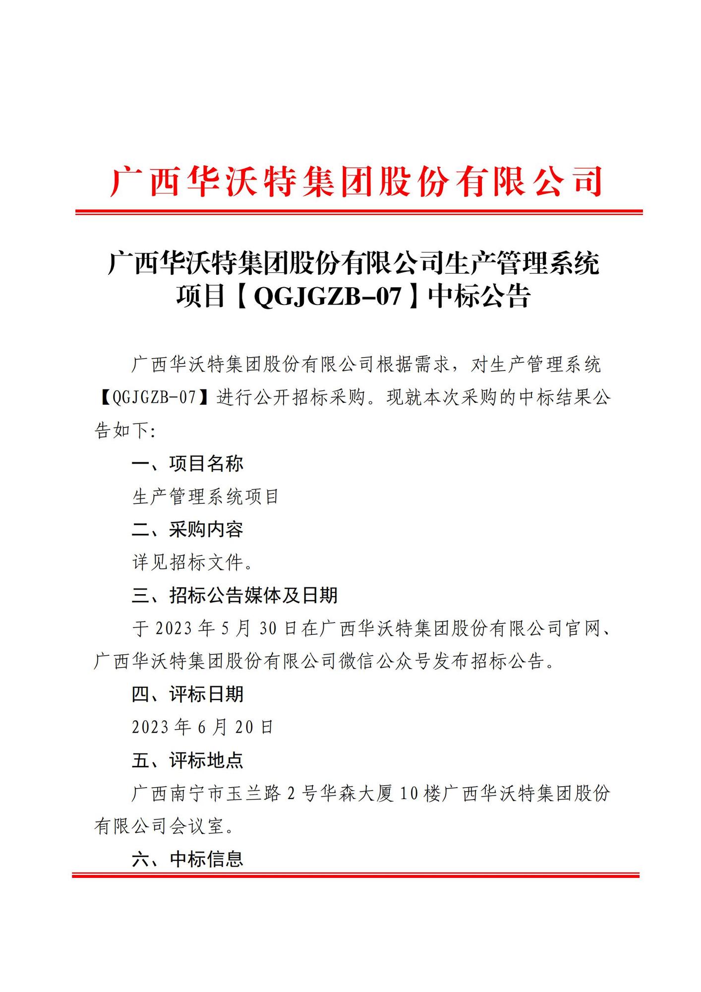 【中标公告】广西华沃特集团股份有限公司生产管理系统项目【QGJGZB-07】