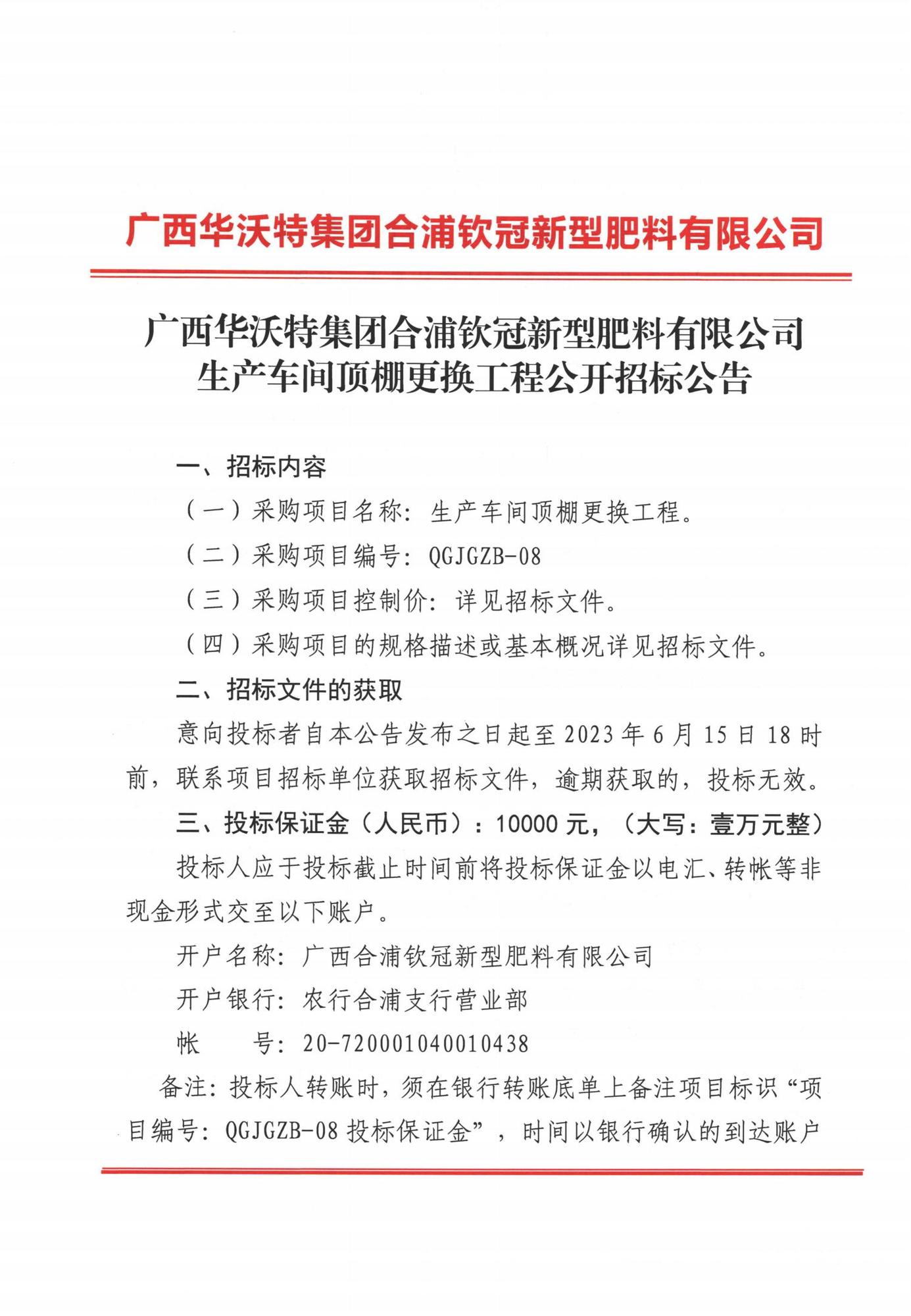 广西华沃特集团合浦钦冠新型肥料有限公司生产车间顶棚更换工程