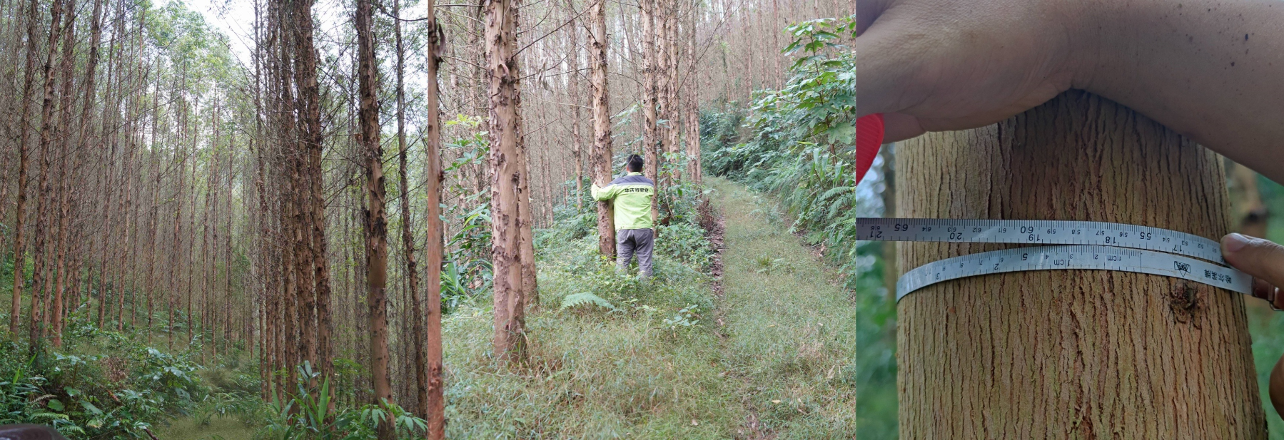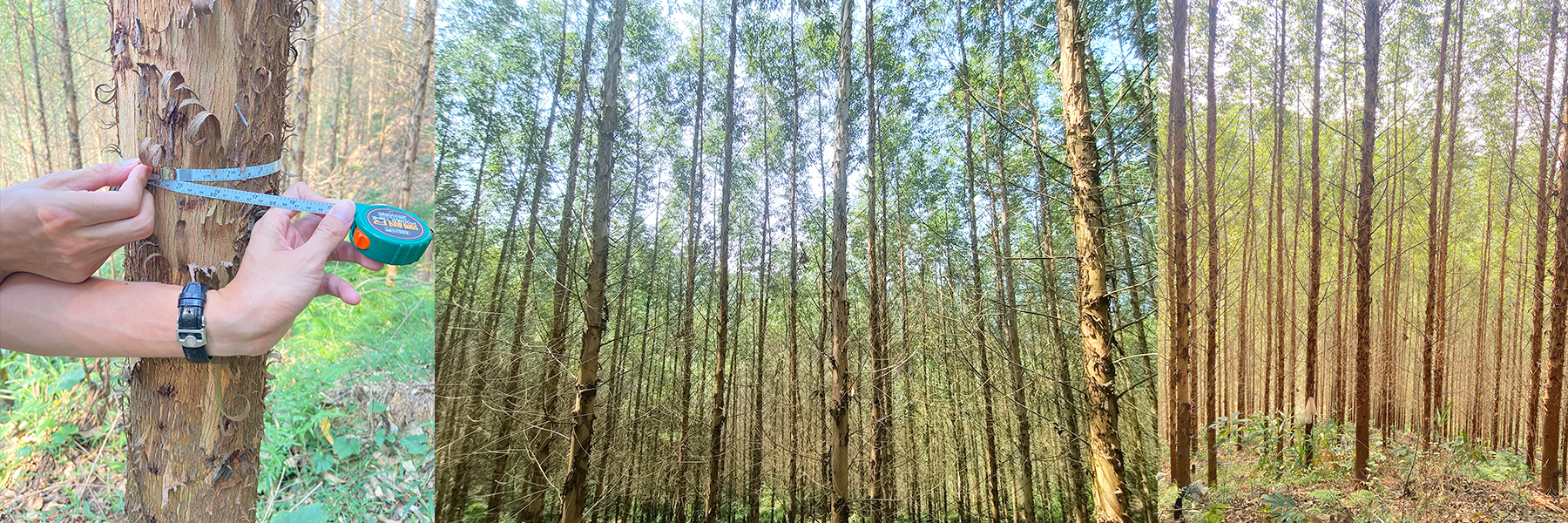 该片示范林位于广西梧州市藤县太平镇陈平村,2019年5月造林,林地所有人自购DH32-28、DH32-29苗木移栽,试验林面积200亩,造林密度110株/亩。