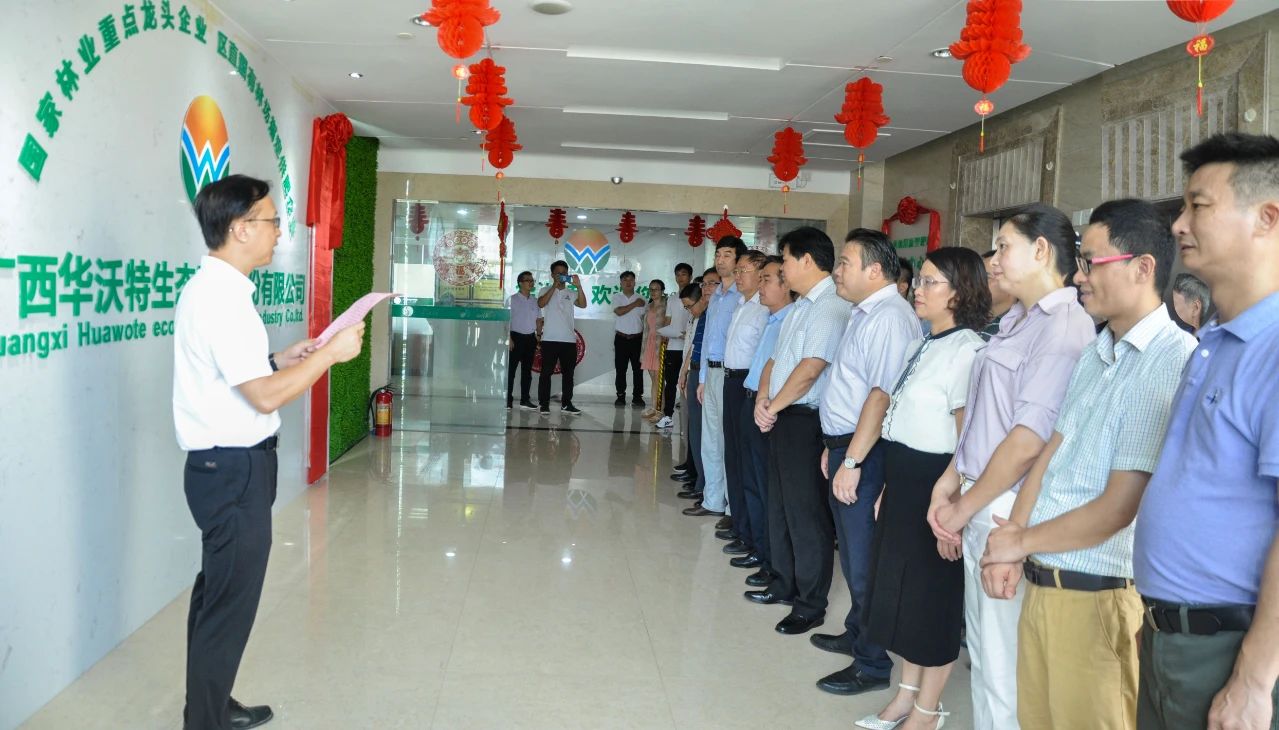 时任七坡林场场长、华沃特集团董事长陈文军与时任广西林科院院长安家成为广西林用新型肥料研发中心揭牌